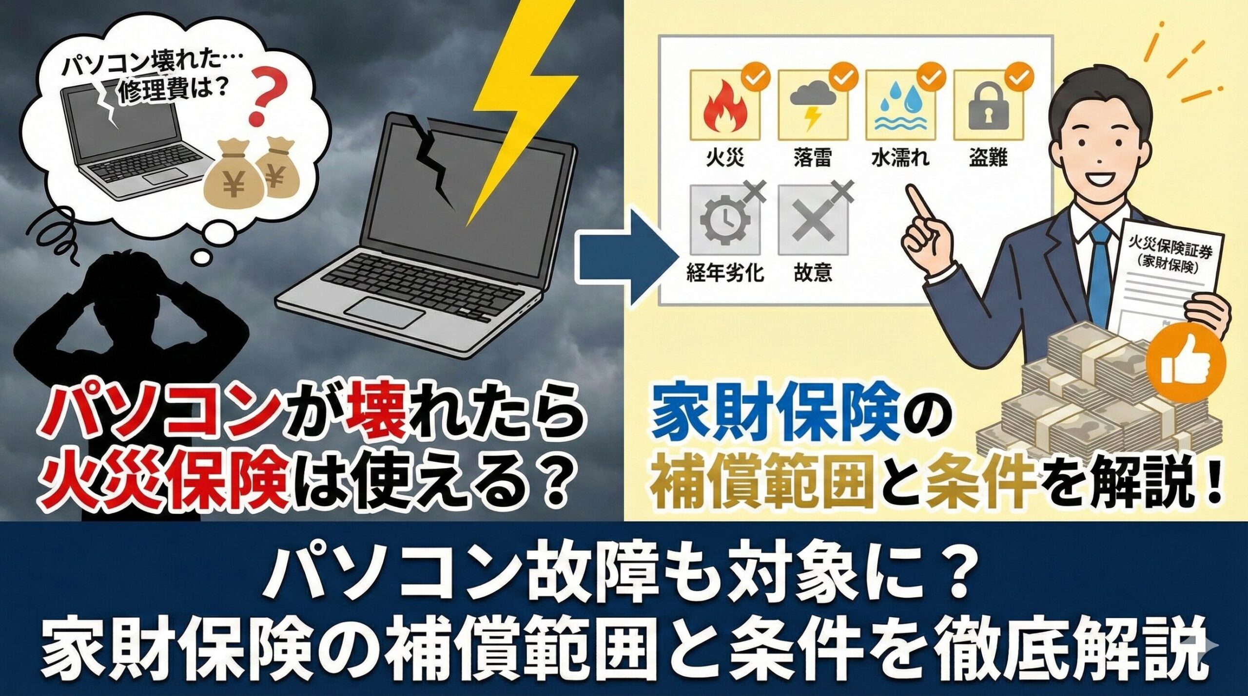 火災保険は「原状回復」を目的としているため、災害が原因で発生した破損であれば修理費用が補償対象になります。