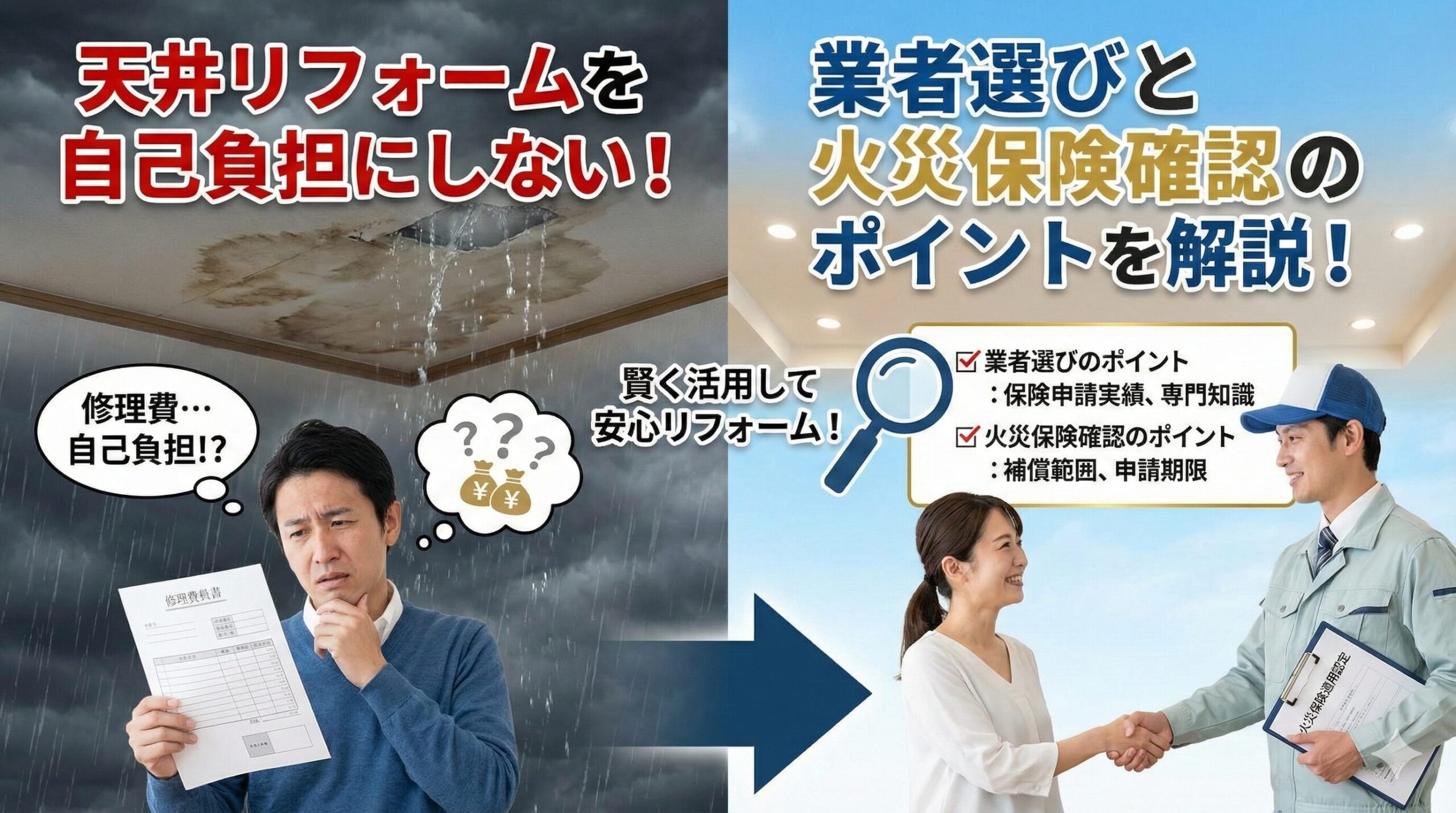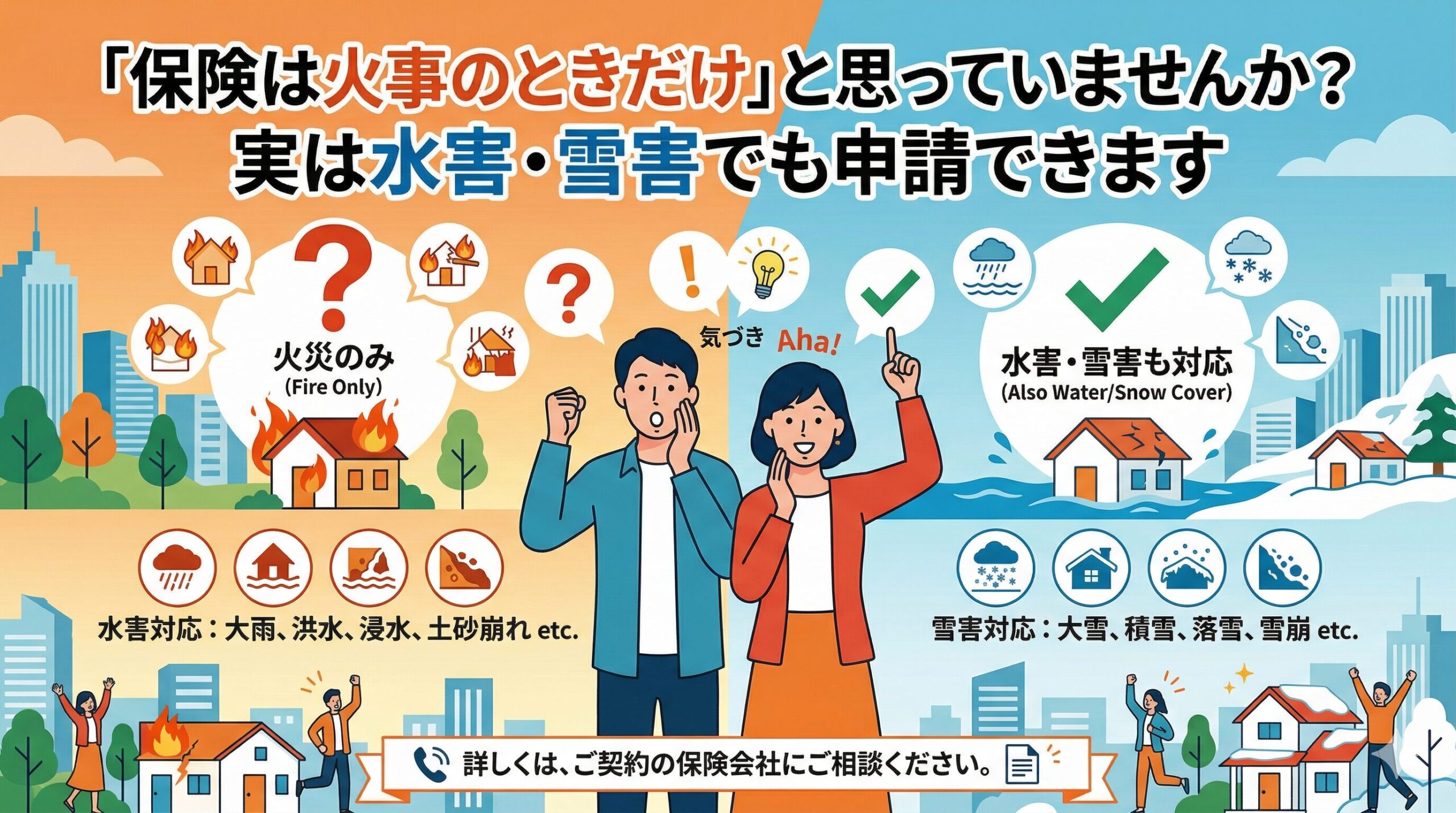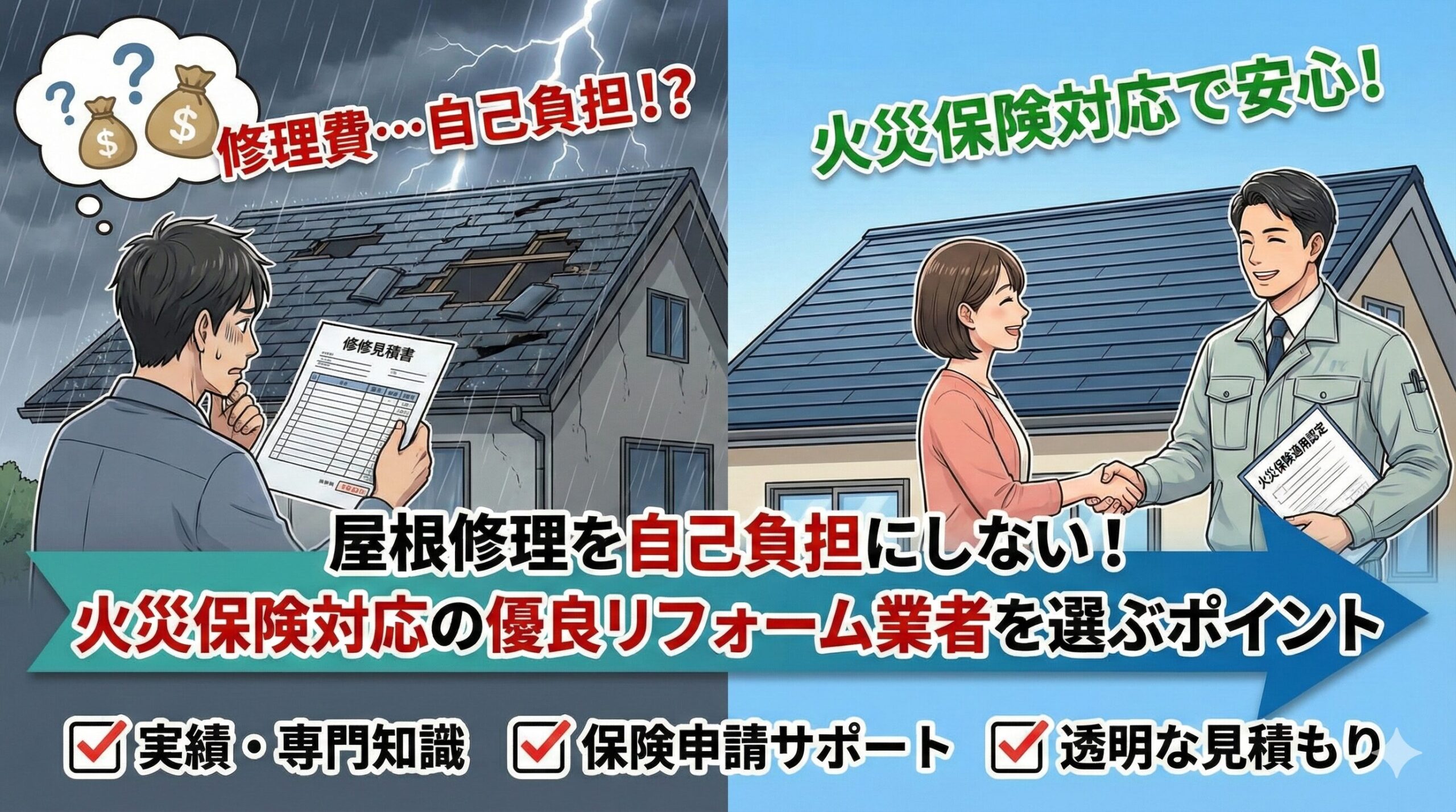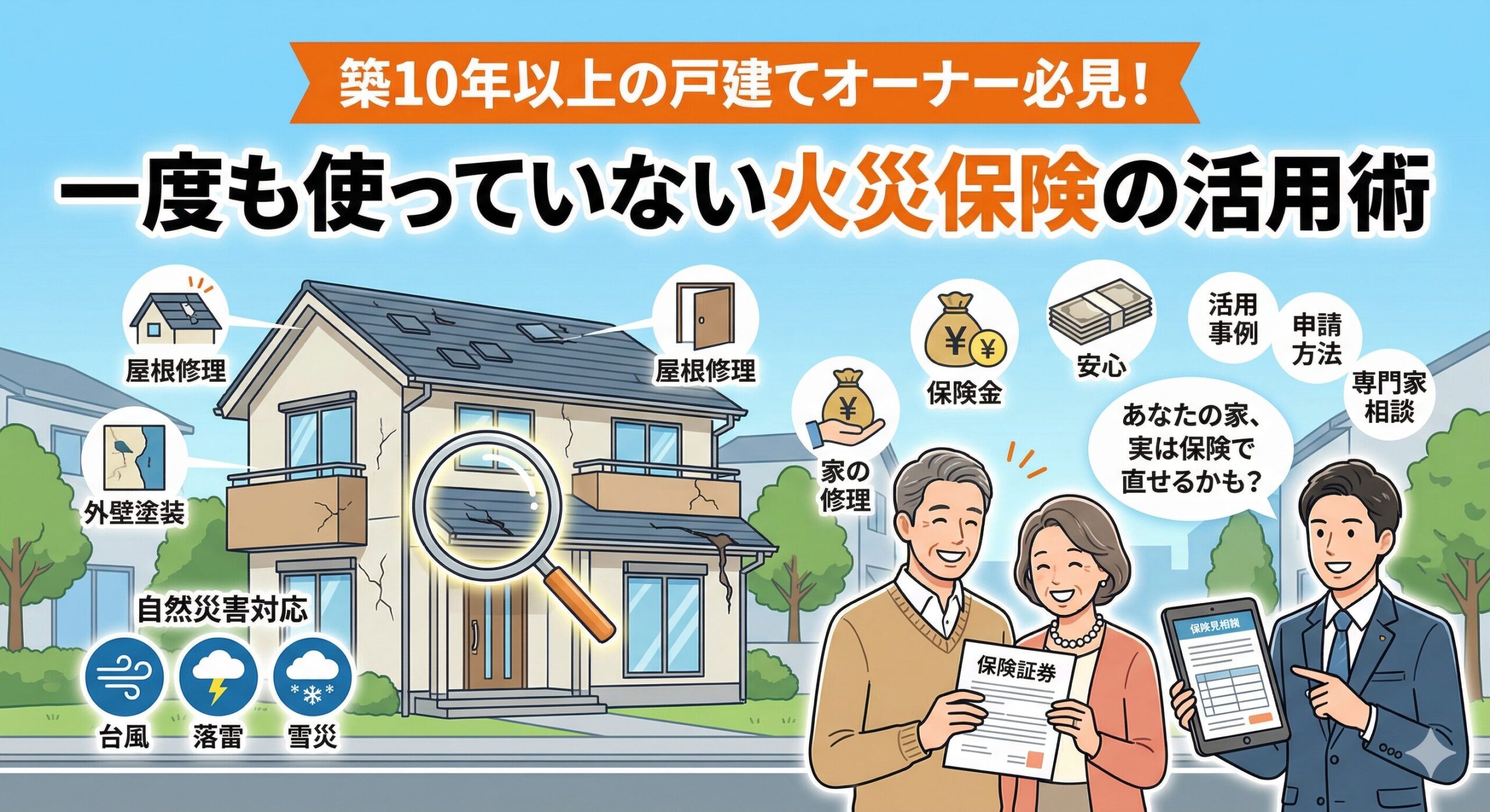 火災保険は火災だけでなく、台風・暴風・落雷・雪災・水災・水漏れ・飛来物・落下物などの自然災害による建物被害にも幅広く対応しています。しかし実際には、「どこまで保険金が下りるのか分からない」「申請書類が難しい」「見積書の書き方が分からず認定されない」という悩みを抱える方が非常に多く、保険金を受け取りきれていないケースが全国で増えています。