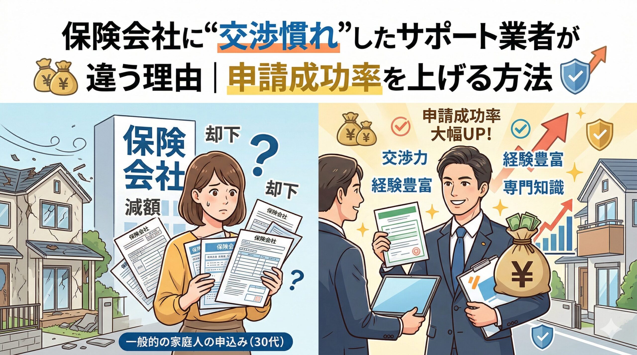 保険会社は客観的な証拠を重視するため、専門家が作成する見積書や調査報告書は信頼度が高く、その結果、認定率や認定額が大きく変わります。