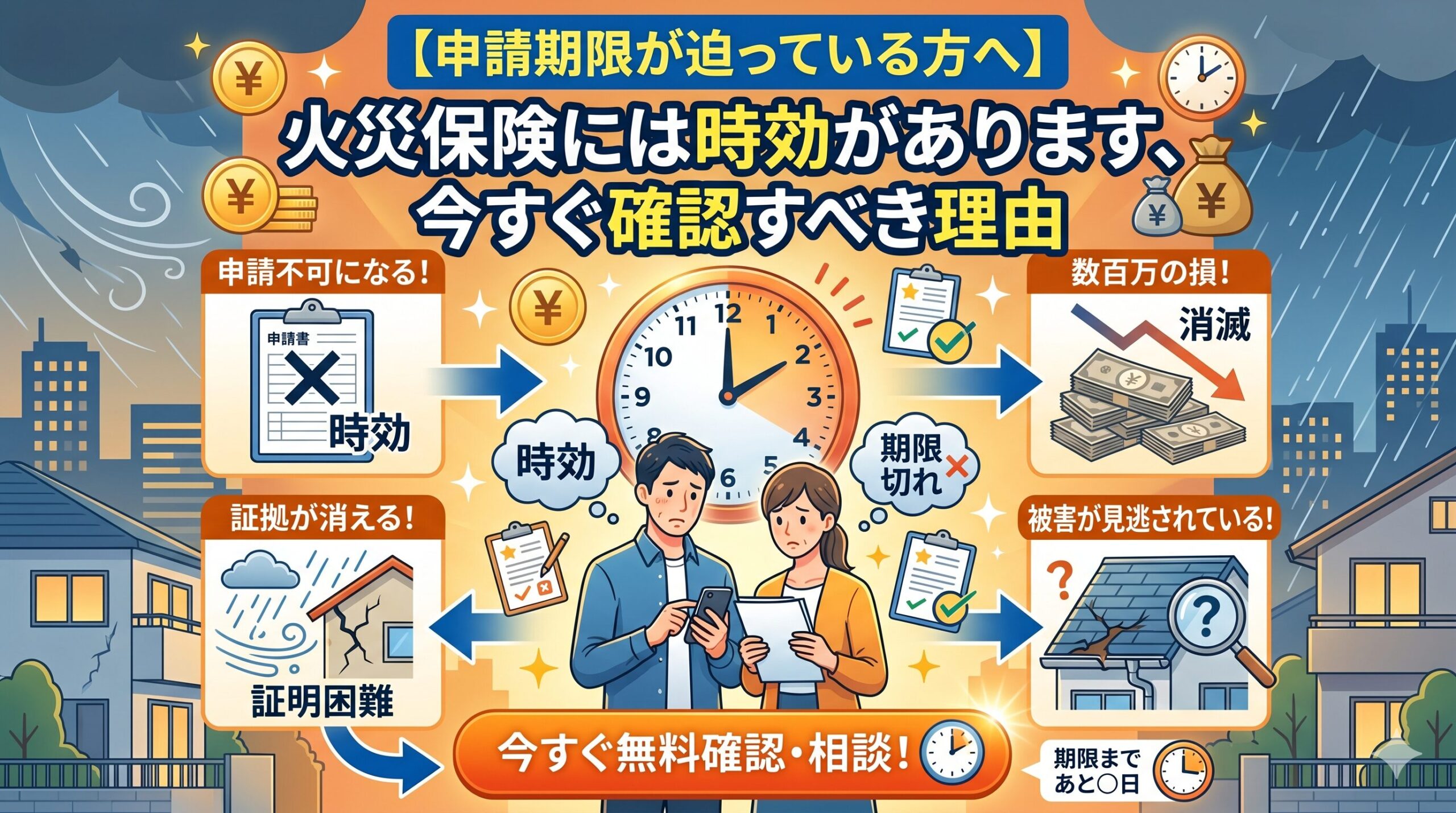 保険金請求の成功率と修理の安全性を高めるための初動対応です。